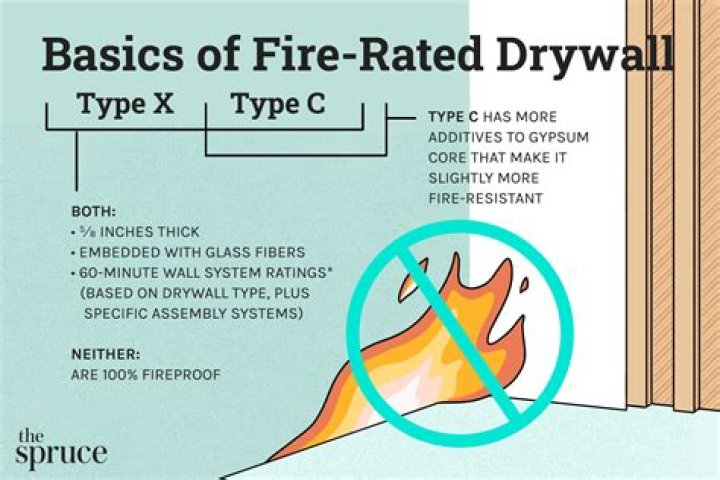 The 5/8-inch, “fire-code” drywall (called Type X) increases a wall’s fire rating to a minimum of 1 hour, from the 30-minute rating for standard ½-inch drywall. And it’s not just thickness that makes the difference. Type X has a denser core and contains glass fibers that keep it from crumbling in the heat.