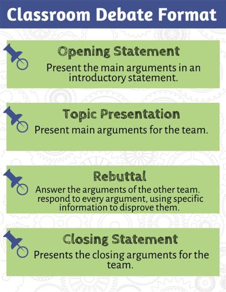 A debate is, basically, a for or against argument. You have to debate why your position is correct and why your opponents are wrong. You are allocated a time to present your arguments and add rebuttals to the opposing points. You need to support your ideas with evidence such as facts, figures, stats and sources.