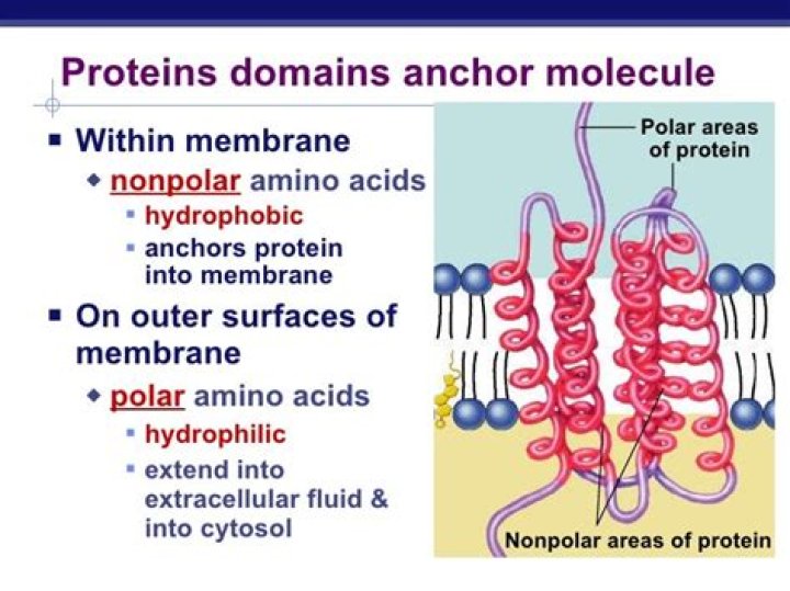 Most integral proteins contain residues with hydrophobic side chains that interact with fatty acyl groups of the membrane phospholipids, thus anchoring the protein to the membrane. Most integral proteins span the entire phospholipid bilayer.