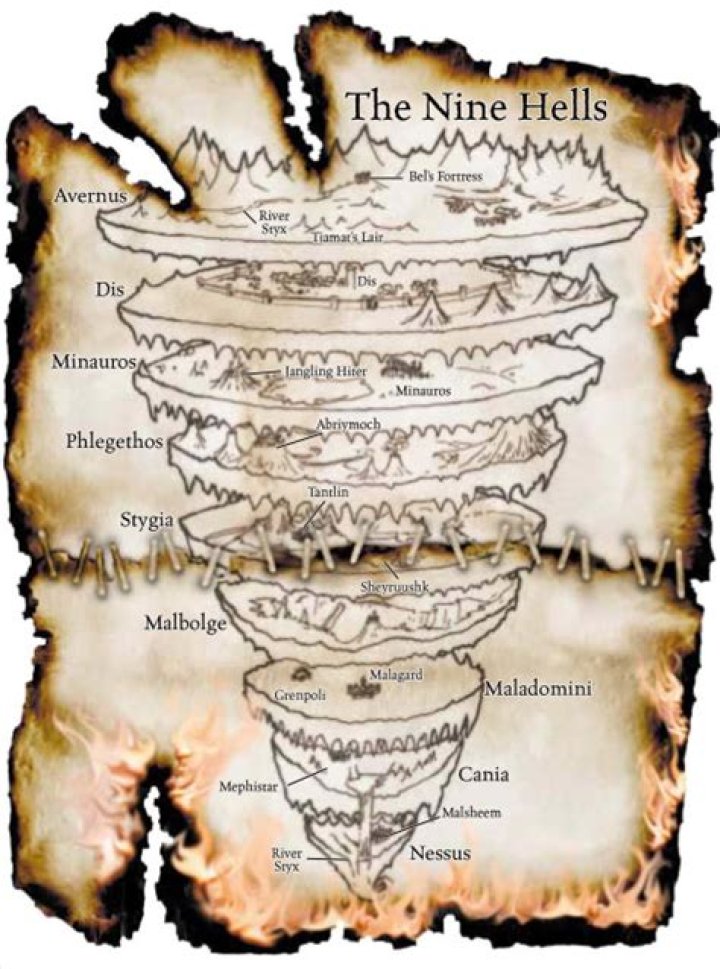 The seven hells were created by the gods as places of punishment and torment for sinners who do not repent of their sins, and each is deeper than the last. The condemned can burn in seven hells, which are believed to be hot instead of frozen. Some of the seven hells have black pits.