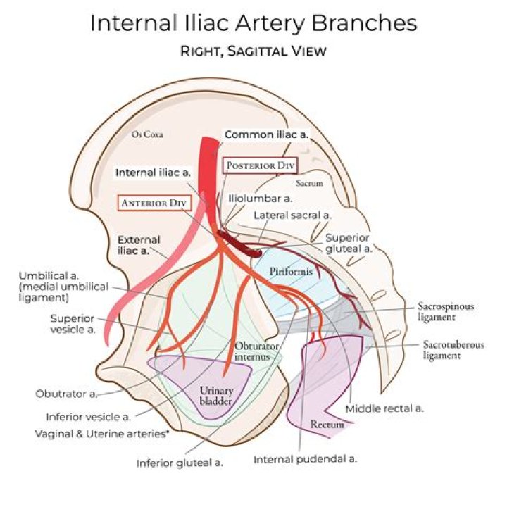 The obturator, internal pudendal and inferior gluteal arteries are parietal branches, whereas the other arteries in the above list are visceral arteries (i.e. umbilical, superior and inferior vesical, vaginal, uterine and middle rectal artery).