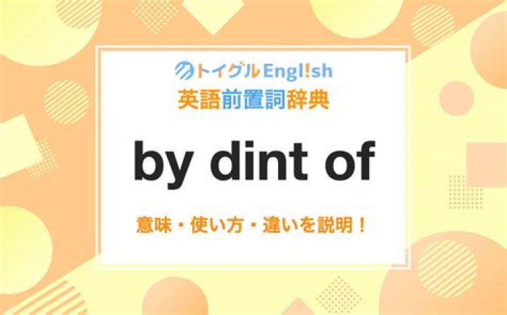 by dint of. : by force of : because of succeeded by dint of hard work. dint.