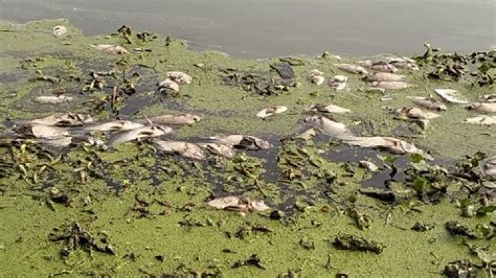 Blue-green algae blooms that occur in freshwater lakes and ponds can be directly toxic to fish and wildlife. The blooms produce a toxin that can kill fish and even mammals if ingested in large amounts. These toxins are released from the blue-green cells when they die and rupture.