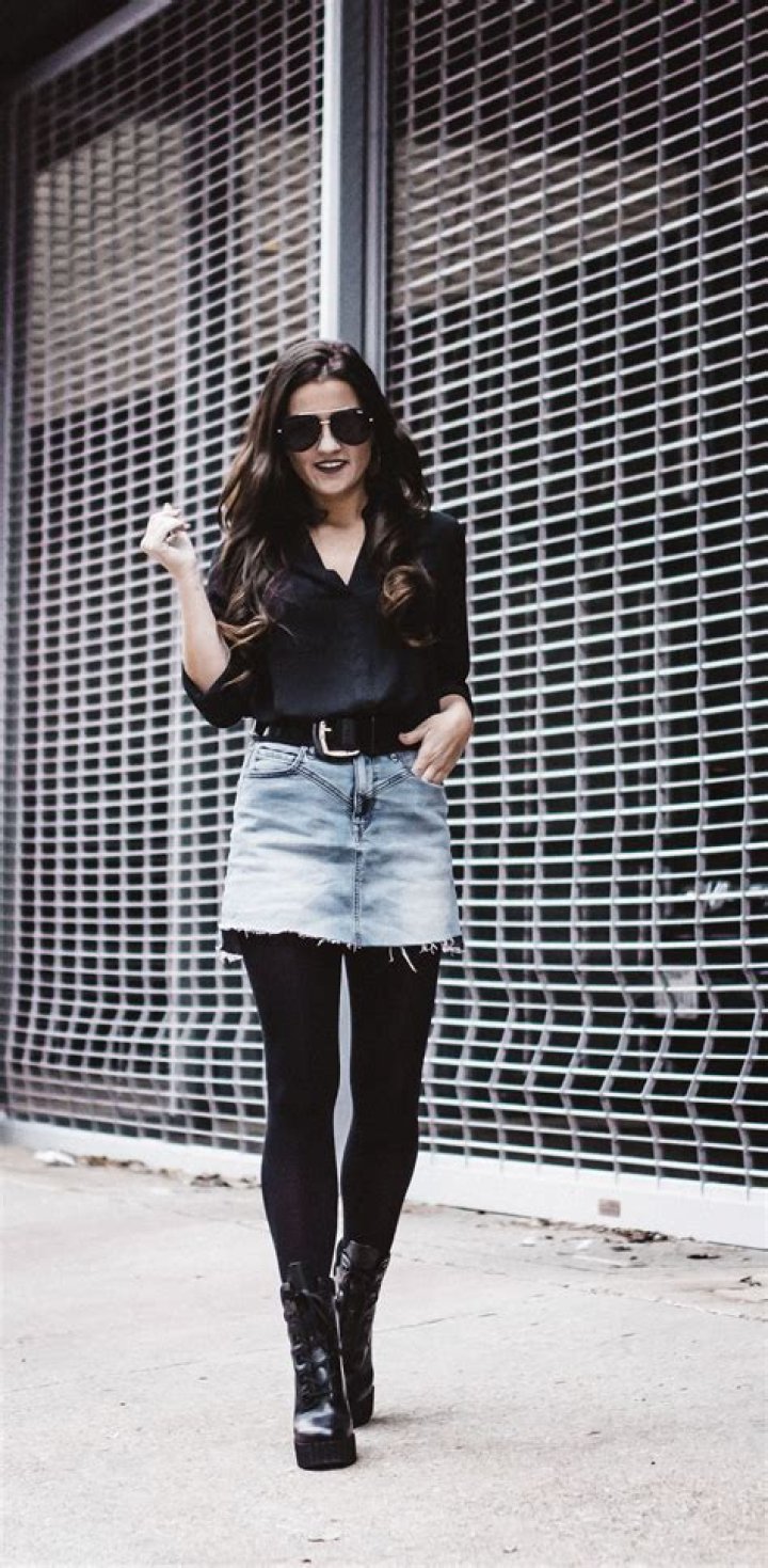 Sticking to a wash of denim that compliments black tights is a great rule of thumb when picking a denim skirt for your collection, as it will transition best between the seasons.
