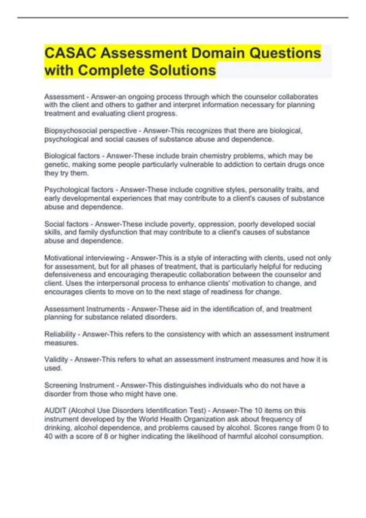 The certification examination covers eight domains: Clinical Evaluation, Treatment Planning, Referral, Service Coordination, Counseling, Client, Family, and Community Education, Documentation, and Professional and Ethical Responsibilities. How long is the CASAC exam? The CASAC exam has 150 questions.