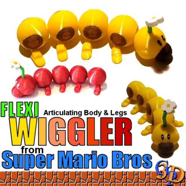 Wigglers are caterpillars that first appeared in Super Mario World. Wigglers normally appear to be bright and friendly. However, if Mario, Luigi, or Yoshi jump on one, the Wiggler will take on an angry appearance and begin running fast.