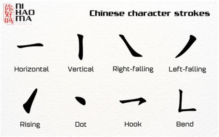 The eight basic strokes used to write Chinese characters are as follows: Each Chinese stroke type has a different name associated with it.