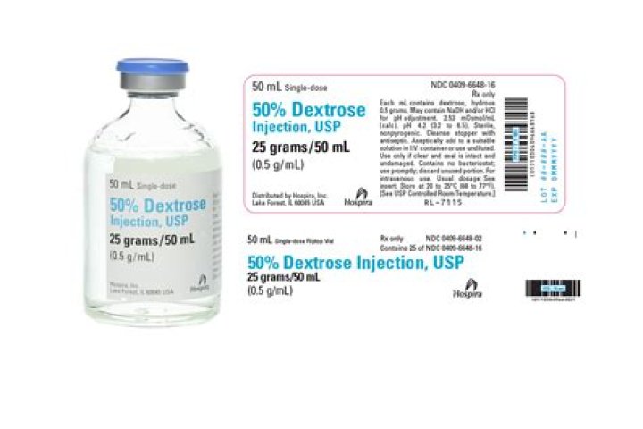 – 50% hypertonic glucose solution in 50 ml vial (500 mg/ml), for slow IV injection (3 to 5 minutes).