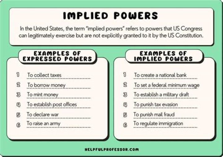 Implied powers are political powers granted to the United States government that aren’t explicitly stated in the Constitution. They’re implied to be granted because similar powers have set a precedent. These implied powers are necessary for the function of any given governing body.