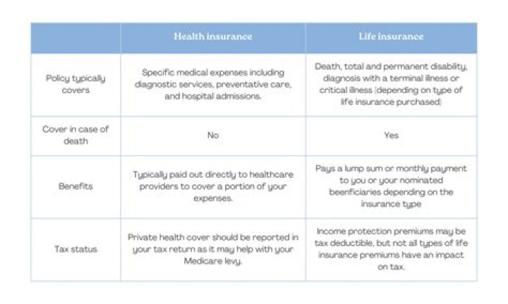 Health insurance covers a portion of medical expenses and doctor’s visits, while life insurance pays out a lump-sum death benefit upon premature death.