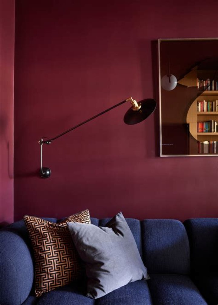 Raspberry looks so good with dark colors like black, gray, and even navy. The touch of yellow in the painting adds so much!! And of course there is chartreuse, raspberry loves it!! In a room with this much chartreuse you want the raspberry to accent in small doses.