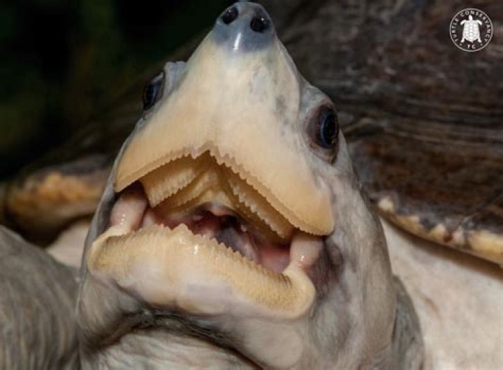 Turtles don’t have teeth. Neither do tortoises or terrapins. Their powerful and oddly shaped beaks tell us a lot about what they eat. Some turtles—like green sea turtles—have serrated ridges along the inside of their beaks that simulate teeth.