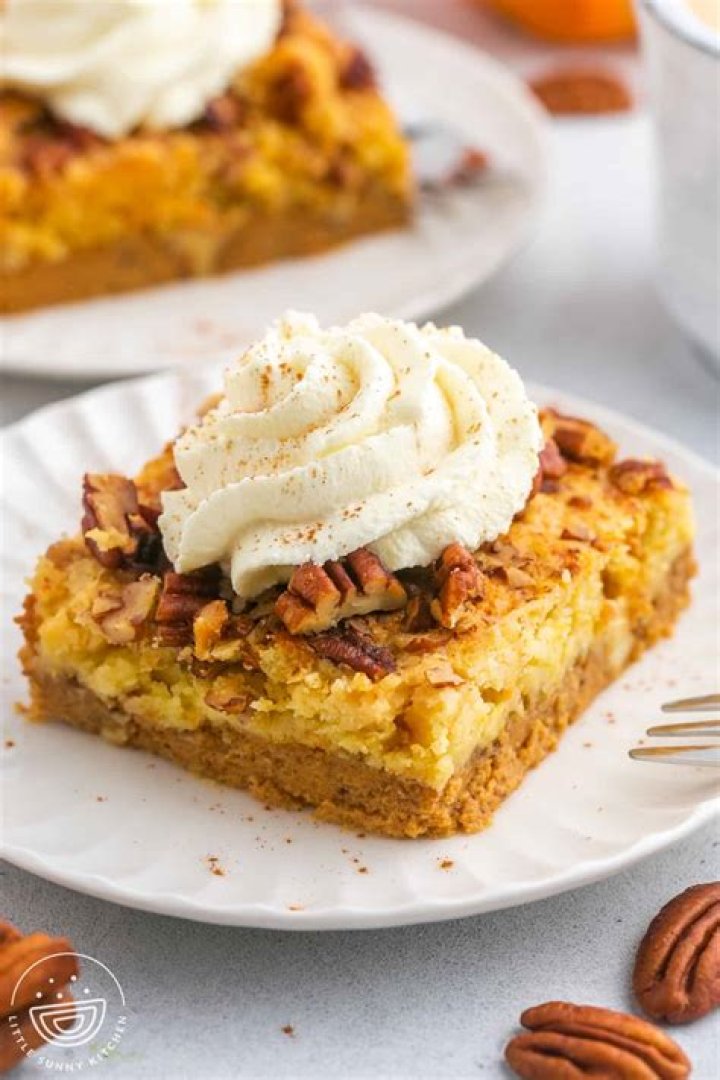 A dump cake is an American dessert similar to a cobbler but with a cake-like topping. It is so named because it is prepared by “dumping” ingredients (typically canned fruit or pie filling, followed by a boxed cake mix) into a cake pan without mixing.