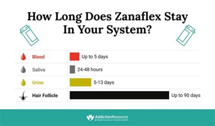 Tizanidine is detectable in your system for the following time frames: Your blood for 10 days. Your saliva for 24 to 48 hours. Your urine for five to 13 days.