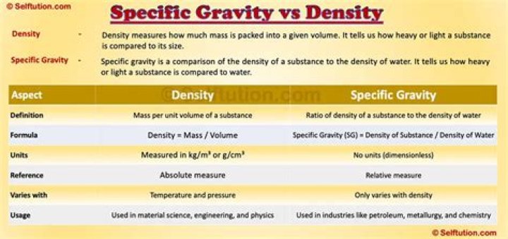 explain the difference between density and specific gravity, check these out | What is the difference between density and specific gravity quizlet?