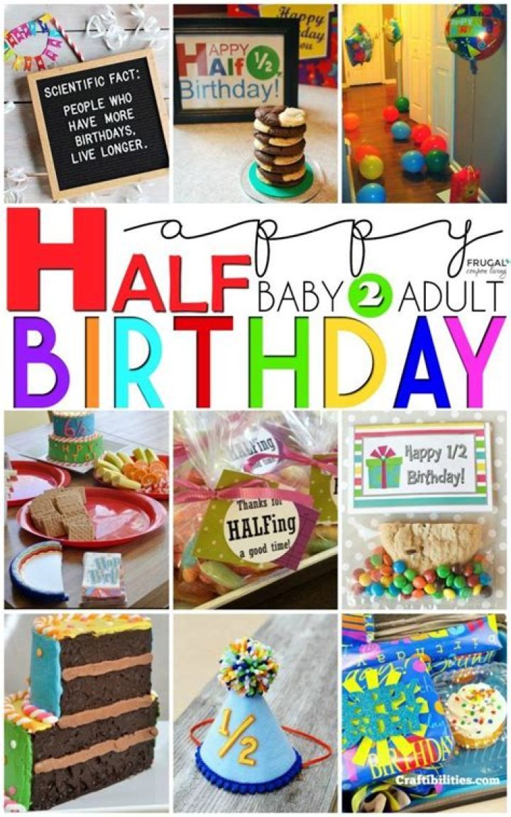 Order a half Birthday Cake. Since this is a half-year celebration, the cake also has to be a bit different. Top the Birthday Cake Off with An Interesting Candle. Plan a Fun Menu. Serve Halved Sweetmeats. Put Up Cheerful Decorations.