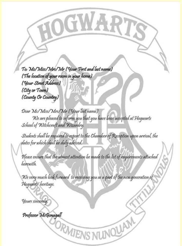Make Your Own Hogwarts Acceptance Letter – harry potter hogwarts letter template