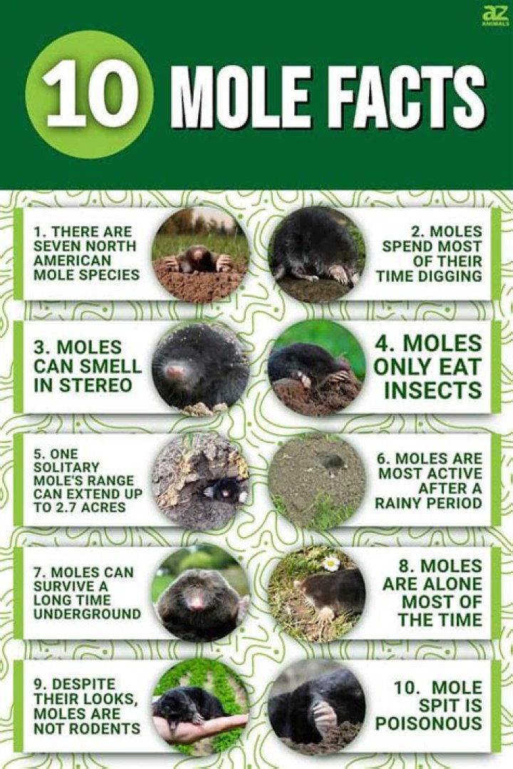 For instance, many people think all moles are blind or even without eyes entirely. This is not true: All mole species have eyes, though their vision tends to be quite basic. Scientists believe moles are colorblind and nearsighted, but that their eyes are exceptionally good at detecting light.