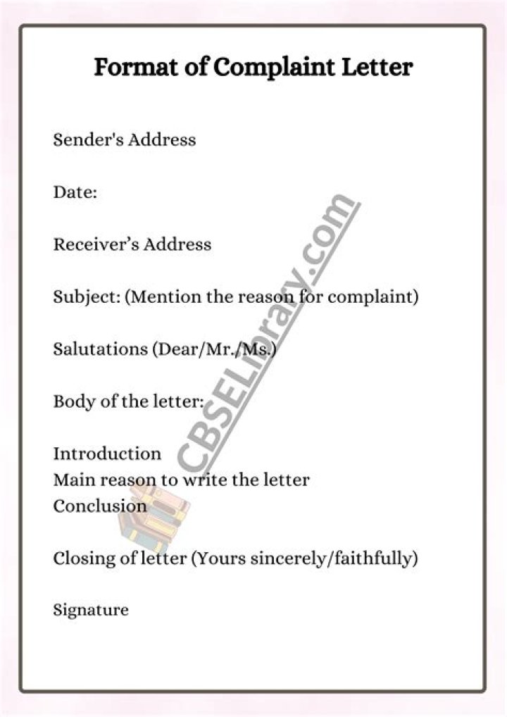 What is the format of letter of complaint?