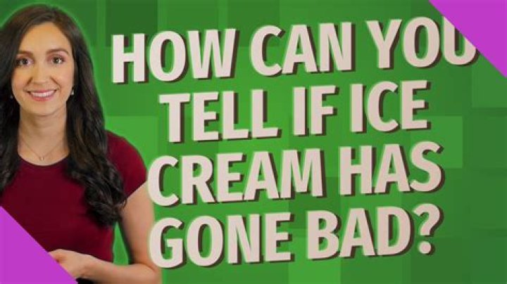 You can tell if ice cream has gone bad by looking at it. One common sign is tiny ice shards on top of the ice cream and under the lid. In the early stages, you can remove the ice crystals and still eat the ice cream, but after it progresses the ice cream can turn into a gooey and icy mess that you do not want to eat.