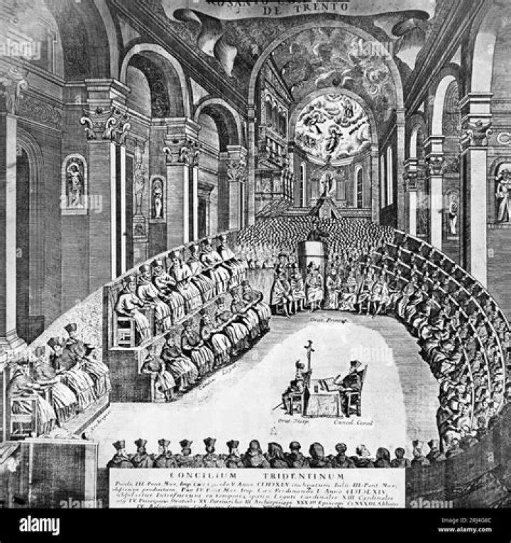 Important members of the Catholic Church met in Trento three times between 13 December 1545 and 4 December 1563, in reaction to the Protestant Reformation. It reinforced Catholic doctrine regarding salvation, the sacraments, and the Biblical canon, answering all Protestant disputes.