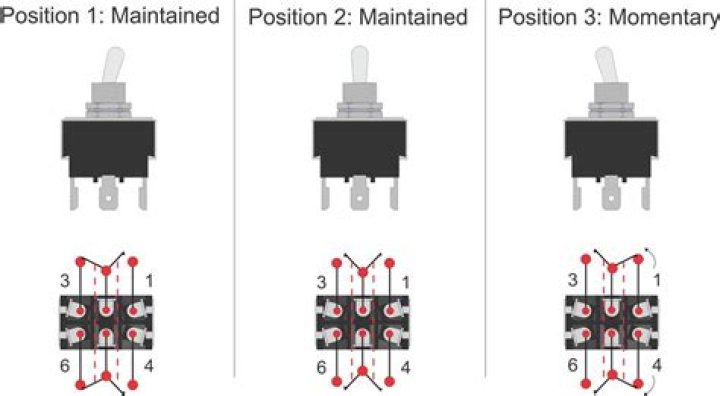 On-off-on toggle switches are variations of the on-on design. They add a third, neutral off position in the centre. In (on) off (on) switches, the off position is the default resting position and both on positions will click back to this once released.