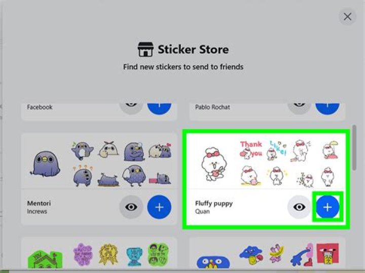 You can search for stickers, or select from different categories like “happy” or “celebrating.” Tap “+” to access the sticker store, where you can download sticker packs for free: To send, simply tap on the sticker you like, and it’ll automatically be sent to your friend in your Messenger conversation.