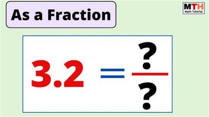 The decimal 3.2 would be 3 2/10 as a mixed number. In lowest terms, it would be 3 1/5 as a mixed number.