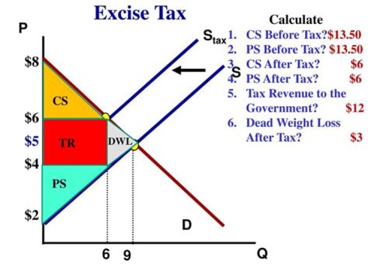 However, the addition of an excise tax unbalances the equilibrium. Demand for the good or service decreases due to the higher price, which disturbs the equilibrium. Suppliers then decrease production until the market restabilizes at a new output level and a new price point.