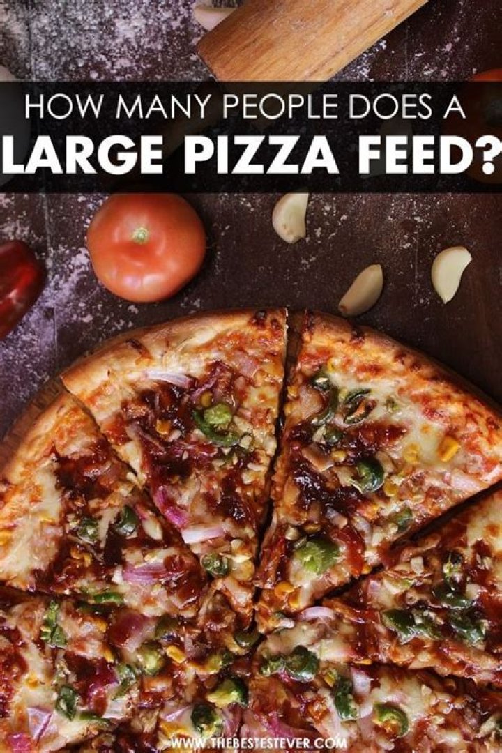 A large pizza usually contains eight slices, while an extra-large pizza contains around 10. Following the same rule that an average adult will eat around three slices, a large pizza will feed around two adults or four children. An extra-large pizza would feed around three adults and five children.