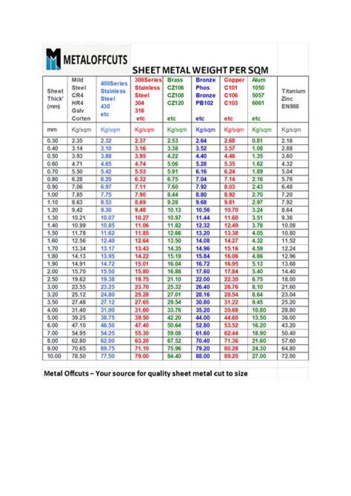 Once you have the measurements for the sectional area, length and density of your metal, you can now determine the weight using the following metal weight calculation formula: Weight (kg) = Sectional Area (mm2) x Length (m) x Density (g/cm3) x 1/1,000.