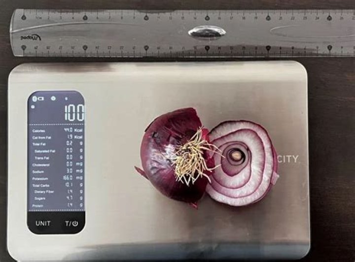 Use a kitchen scale to determine the size of your onions as follows: Small onions average between 3-5 ounces. Medium onions weigh in between 6-8 ounces. Large onions measure between 10-12 ounces.