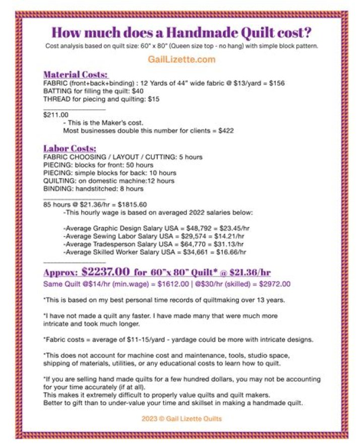 How much should I pay someone to make a quilt?