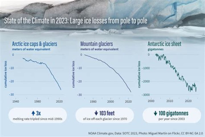 From the thin ice shield covering most of the Arctic Ocean to the mile-thick mantle of the polar ice sheets, ice losses have soared from about 760 billion tons per year in the 1990s to more than 1.2 trillion tons per year in the 2010s, a new study released Monday shows.