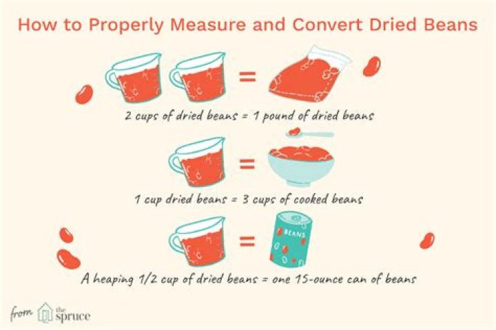 Use these helpful average conversions and general rules of thumb to measure dried beans: 2 cups of dried beans = 1 pound of dried beans.