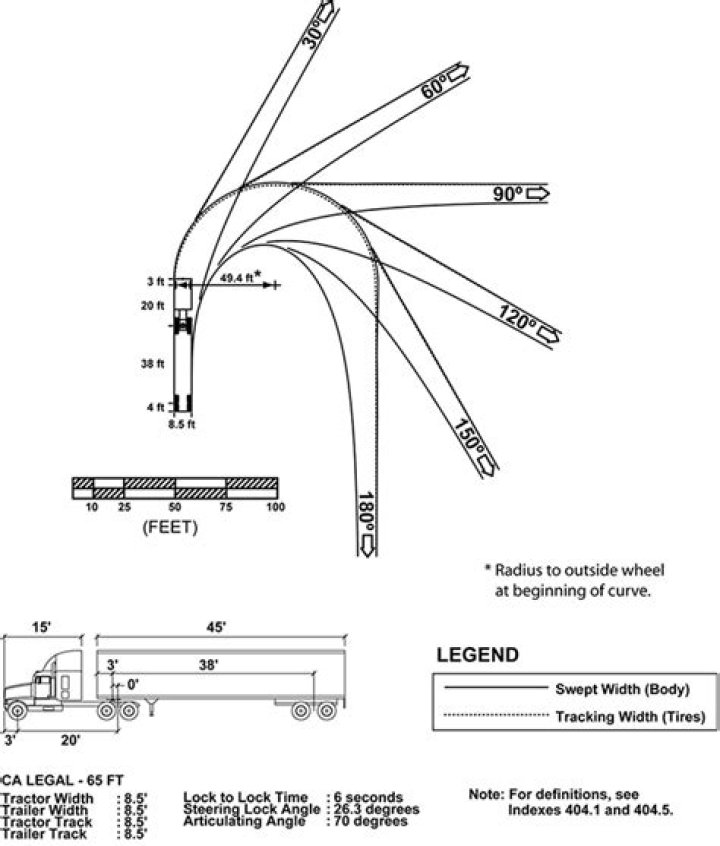 how much room does a semi need to turn, check these out | What is the turning radius of a 53 tractor trailer?