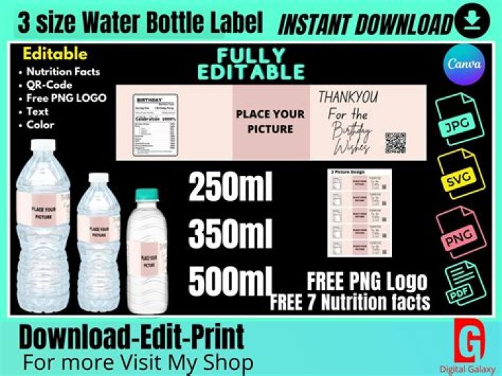 Bottled Water. The 16.9 oz. bottle is 8″ tall and is 2.5″ in diameter. The label for this bottle is 2.125″ H x 8.062″ L.