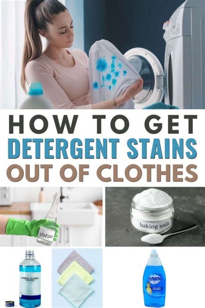Rubbing alcohol, vinegar, baking soda, dish soap, and bar soap can all be used to remove detergent stains from clothes. You’ll need to treat the stain and wash it again, making sure that you use the right cycle to properly agitate and rinse away the stain and the product used to treat it.