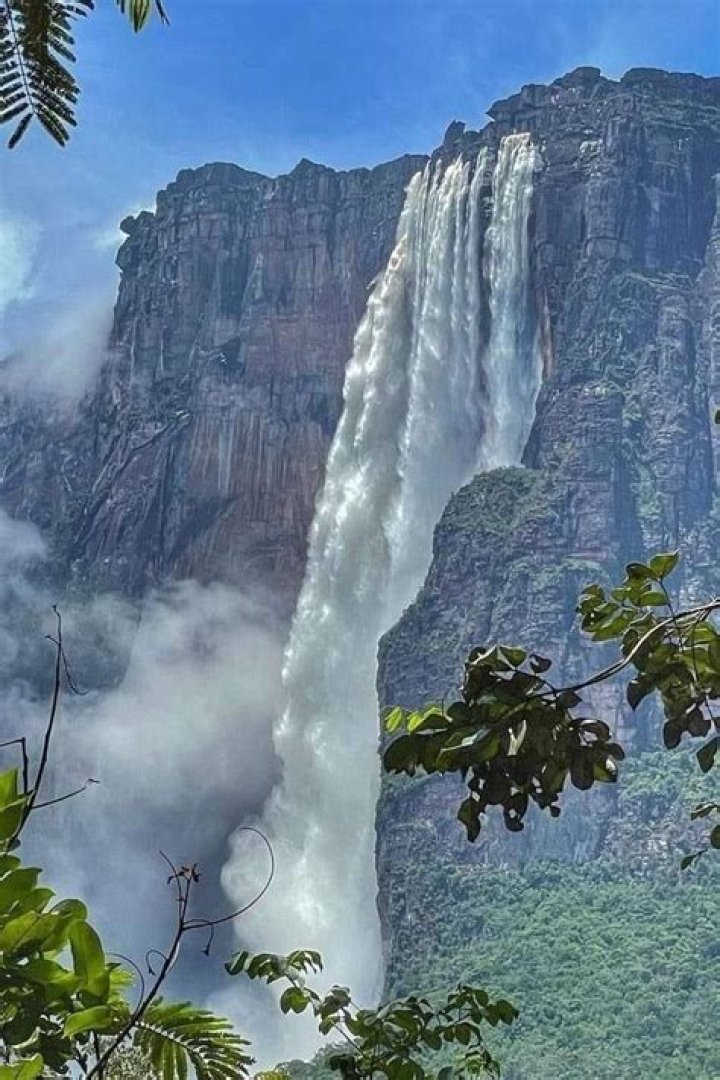 Angel Falls, located in Canaima National Park in Venezuela, is the tallest free-falling waterfall on Earth at 3,212 feet high. Its water flows from Churun River and falls over the edge of Auyantepui mountain.