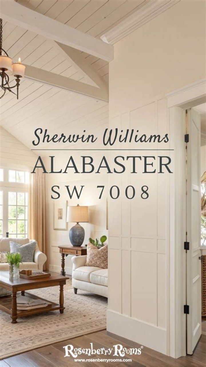 Alabaster is a soft, WARM white with MORE undertone than some of the more simple, cleaner whites (ie: SW High Reflective White). This warmth comes across as soft and creamy vs abrasive and yellow, meaning it’s not even close to the 3 whites that I would never paint my trim or cabinets.