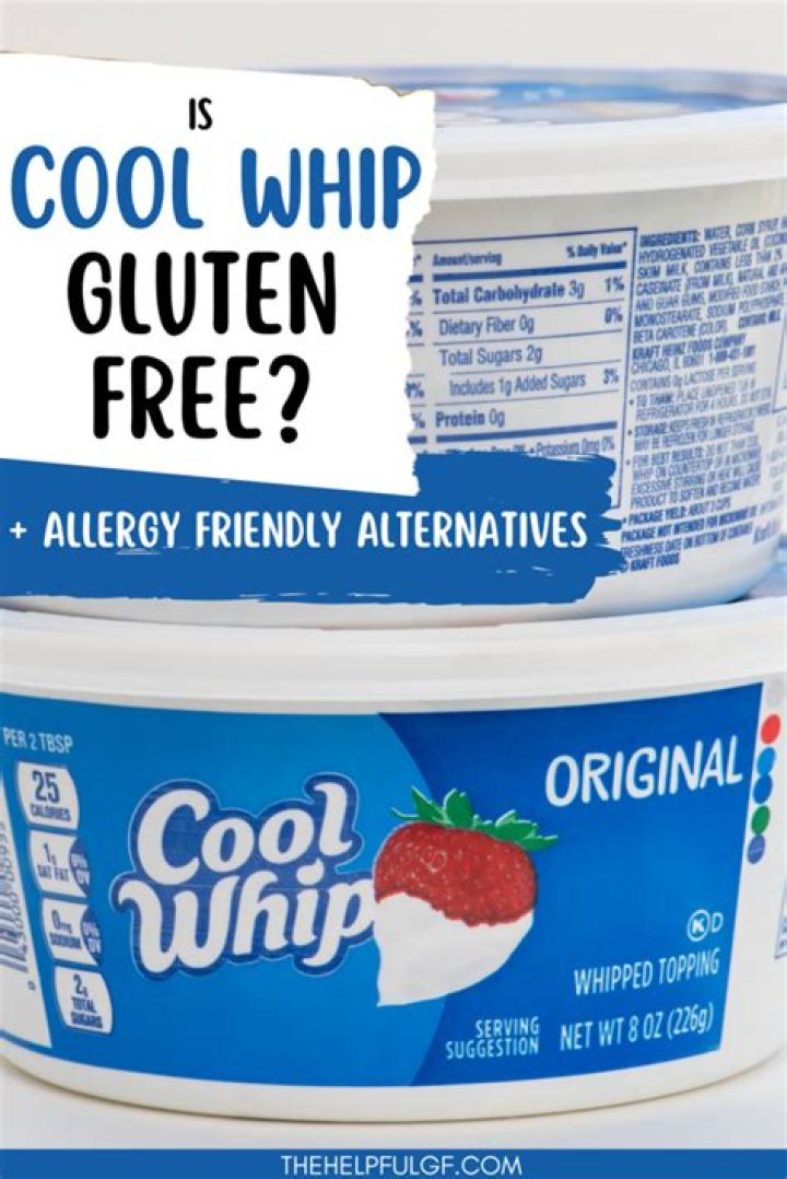 The good news for Cool Whip fans is that, currently, Kraft Cool Whip products are gluten-free, including the flavored “Season’s Delight” varieties. All forms/flavors of COOL WHIP… contain sodium caseinate, a natural protein of milk, and therefore should not be consumed by those with dairy allergies.”