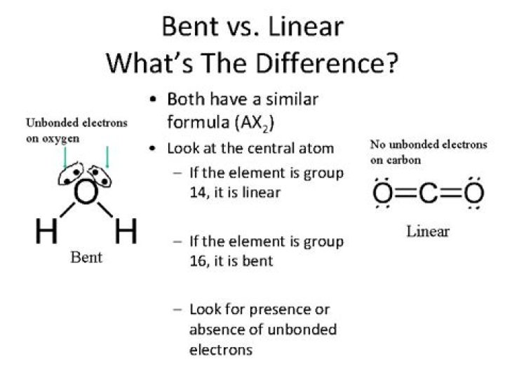 1st remember the names: The names can be determined by the shape and angle of the molecule. Linear = is just a line of atoms with a 180° angle. Notice that it’s 2 or 3 atoms total. Bent = Linear but bent due to the Lone Pairs that it contains, the more Lone Pairs the greater the bent and the smaller the degree.