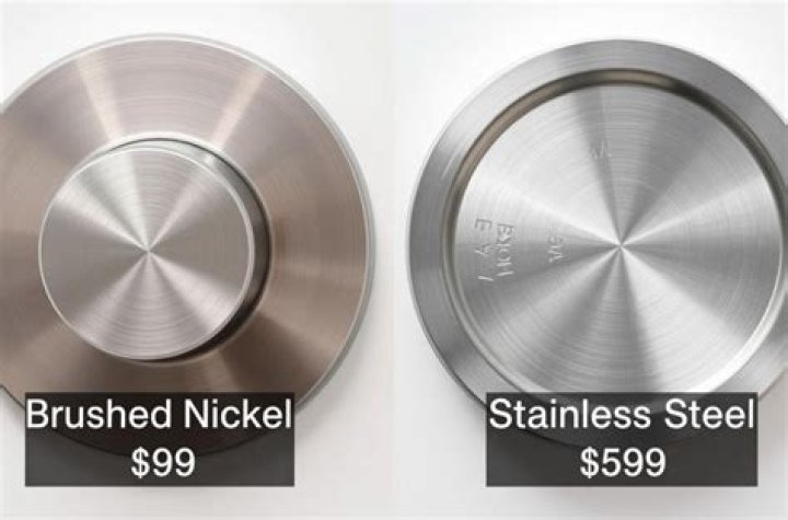 Brushed nickel and stainless steel often look very similar, but the difference is in their underlying tone: brushed nickel tends to have a golden or brownish tint while stainless steel has a faintly blue tone.