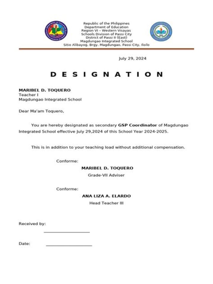 Answers. Designation means one’s job title or official qualification. Examples of designation include sales manager, bank manager, receptionist and head teacher.