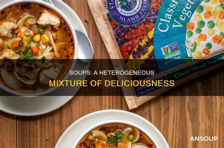 Vegetable soup is a heterogeneous mixture. Any given spoonful of soup will contain varying amounts of the different vegetables and other components of the soup.