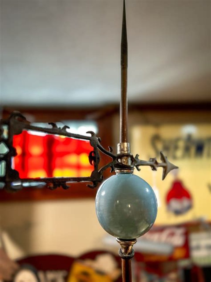 Lightning rods were embellished with ornamental glass balls (now prized by collectors). The ornamental appeal of these glass balls were also used in weather vanes. The main purpose of these balls, however, was to provide evidence of a lightning strike by shattering or falling off.