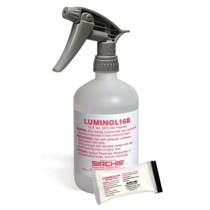 Luminol Blood Detection Reagent Spray – 16 oz. Luminol Blood Detection Reagent Spray is a reagent specifically formulated for the detection of blood at a crime scene, even if the blood is invisible to the human eye or if someone has attempted to wash the area.