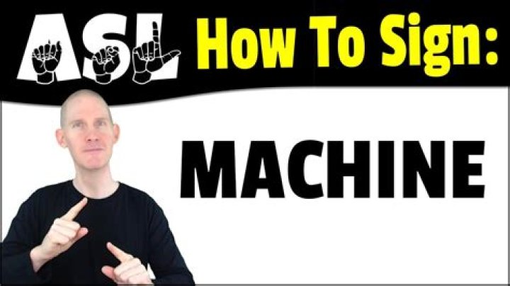 To sign machine, first open both hands and spread all fingers apart. Then bring your hands together by interlocking all fingers while keeping both thumbs sticking out, with palms open and facing your body at respective 45-degree angles.