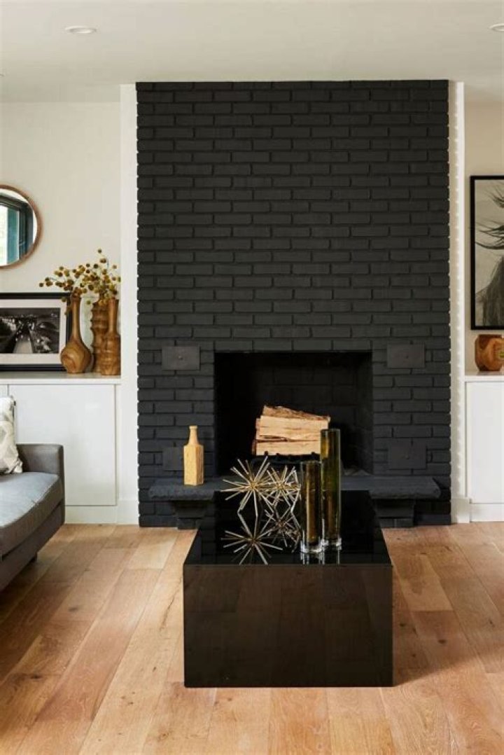 matte black brick fireplace, check these out | Are brick fireplaces outdated?