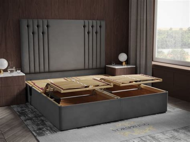 A gas lift bed, sometimes known as an ottoman bed, uses gas-lift hydraulics to raise the base of the bed to create a space for storage underneath the mattress. You can usually open the storage space from the side or foot of the bed using a tab to elevate the mattress.